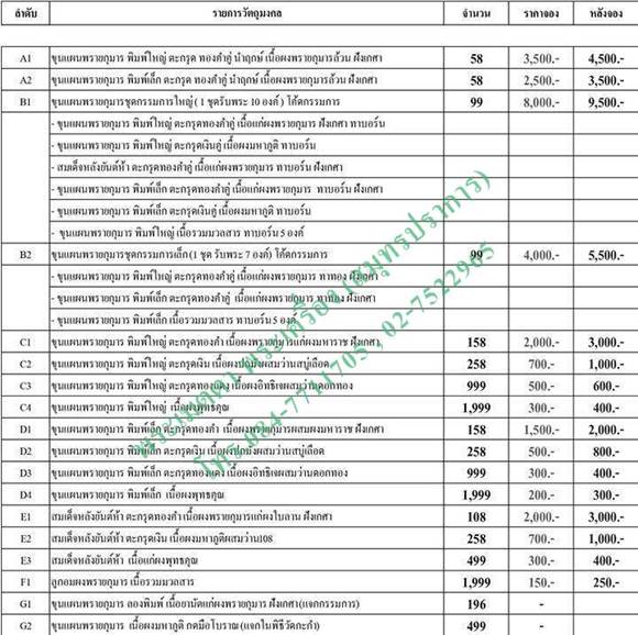 - สร้างมาจากเนื้อผงพรายกุมารมหาภูติล้วนๆ จำนวนการจัดสร้างอย่างละ 58 องค์