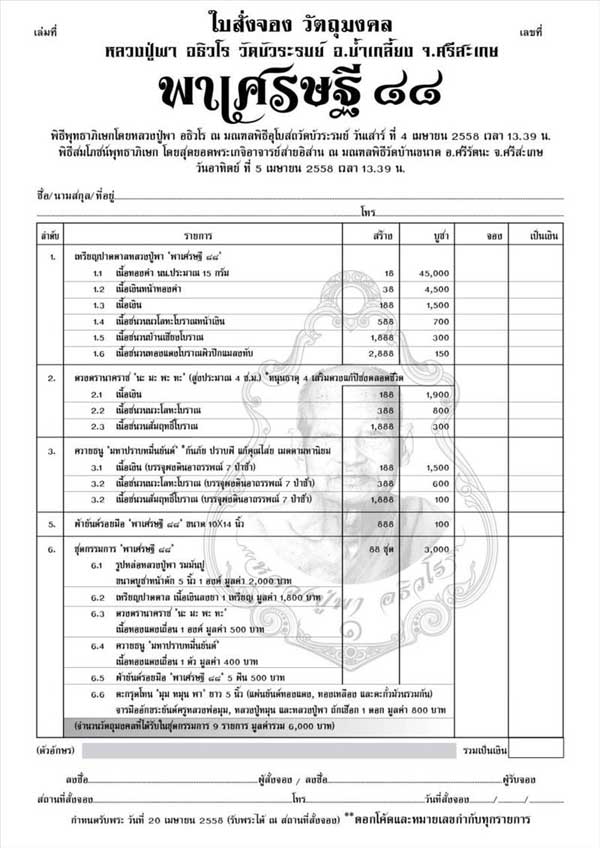 เปิดจองวัตถุมงคลหลวงปู่พา จ.ศรีสะเกษ รุ่นพาเศรษฐี88