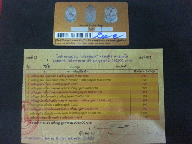 รายการที่ 2. ชุดกรรมการทองคำ มี 1 ชุด หมายเลข 68 (รับพระ 43 เหรียญ) ราคาโทรถาม