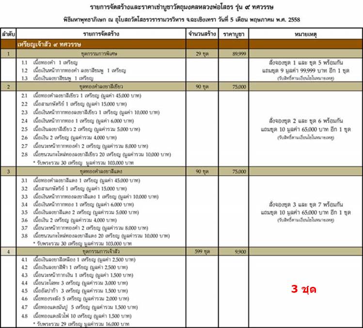 8.ชุดกรรมการเจริญพรบน สร้าง 599 ชุด ราคา 9900 บาท มี 2 ชุด