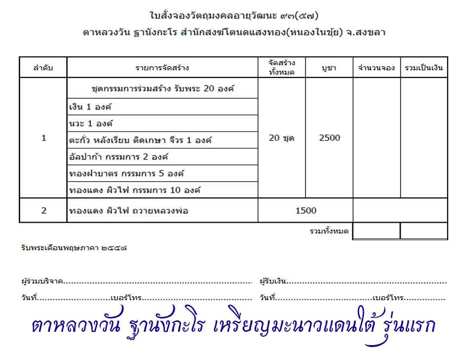 *** ราคาจองทุกรายการ + ค่าจัดส่ง 100/ท่าน ***