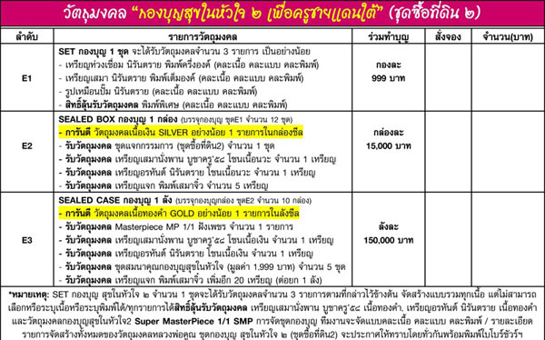 - กองบุญสุขในหัวใจ ๒ (ชุดซื้อที่ดิน ๒) มี 1 ลังๆละ 180000 บาท