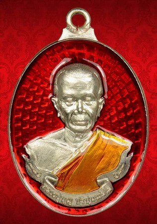 -เนื้อเงินหน้กกากทองลำอู่ ลงยาโบว์แดง 1 เหรียญ