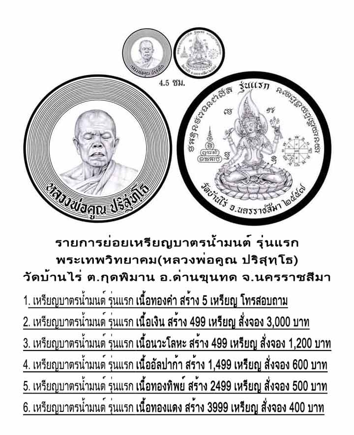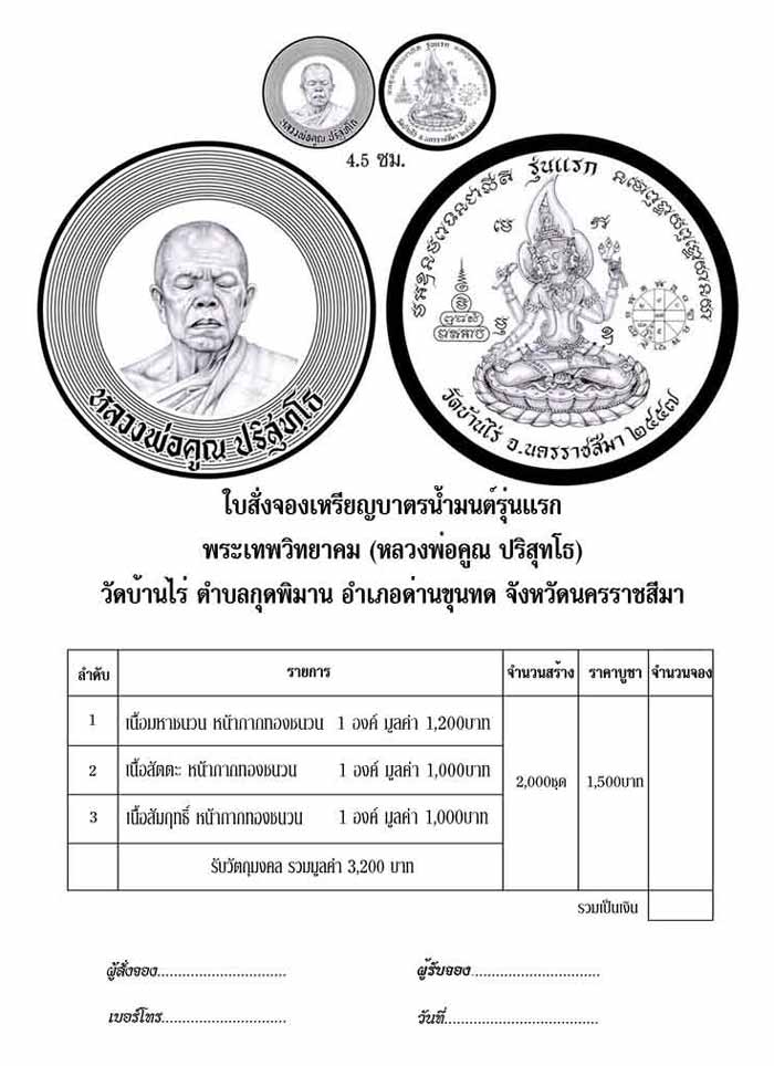 6. บาตรน้ำมนต์ร่นแรก ชุดกรรมการ 3 เหรียญ ราคาจองชุดละ 1500 บาท มียอด 7 ชุด
