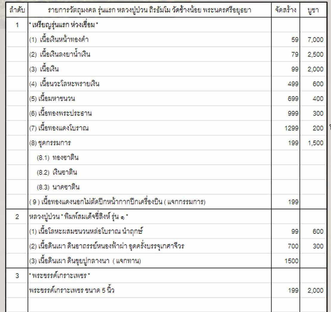 เนื้อทองพระประธาน ราคา 300 บาท (ท่านละ 1 เหรียญ) มี 15 เหรียญ
