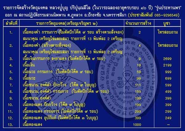 เปิดจองเหรียญหลวงปู่บุญ ปริปุนณสีโล ในวาระฉลองอายุครบรอบ ๘๐ ปี (เจริญพร๒ & เสมา๘๐)รุ่น”ประทานพร”ราคาพาร์