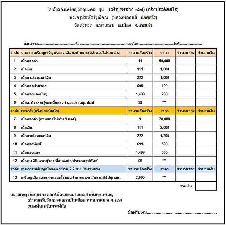 *****มียอดจองมาแบ่ง หลวงพ่อสนธิ์ วัดทุ่งพระ รุ่น เจริญพรล่าง 87 + พระกริ่ง (กริ่งประภัสสโร)*****