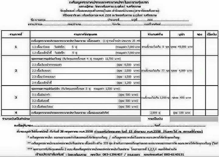 รายได้ทั้งหมด นำไปสมทบทุนสร้างอุโบสถ สำนักสงฆ์อ่างทนง