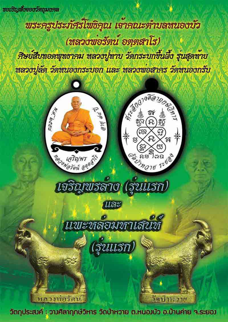 | หัวข้อกระทู้ : เปิดจอง...เหรียญเจริญพร และ แพะหล่อมหาเสน่ห์ หลวงพ่อรัตน์ ราคาจอง |
