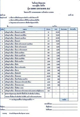 รายการ จอง และราคาตามใบจองครับ