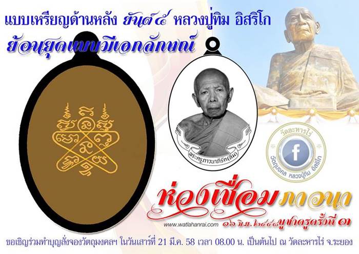 เปิดยอดจอง เหรียญห่วงเชื่อม (ย้อนยุค) รุ่น ภาวนา หลวงปู่ทิม อิสริโก วัดละหารไร่ 2558