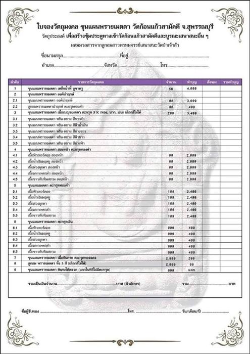 วัตถุประสงค์ เพื่อสร้างซุ้มประตูทางเข้าวัดก้อนแก้วสามัคคีและบูรณะเสนาสนะอื่นๆ