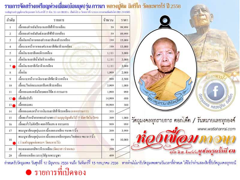 รับพระที่วัดได้เลยครับ ... จัดส่งใบจองให้ ฟรี ทุกรายการเป็นใบจองแยกกันครับ