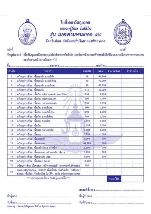 รายการ จอง และราคาตามใบจองครับ
