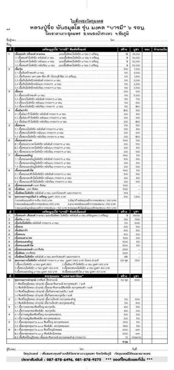 1. ชุดกรรมการนำกฤษ์ (กดพิมพ์ โค้ดนำฤกษ์) มียอด 1 ชุดๆละ 2,000 บาท