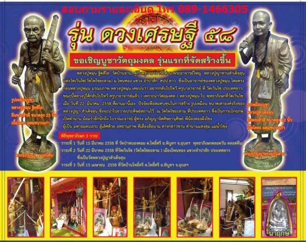 เปิดให้บูชาพร้อมกันวันที่ 17 เมษายน 2558 ที่ วัดบ้านโพธิ์ศรี ต.โพธิ์ศรี อ.พิบูลฯ จ.อุบลฯ และ วัดบ้านจาน จ.ศรีสะเกษ