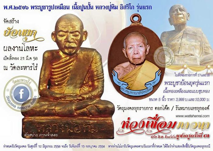 รายการที่ 18 พระบูชาย้อนยุครุ่นแรก เนื้อทองเหลืองชุบกะไหล่ทอง 5 นิ้วสร้าง 99 องค์ มี 1 องค์ องค์ล่ะ 12000 บาท