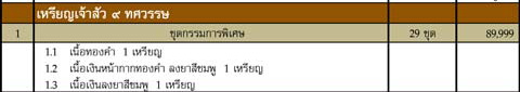 1.1 เนื้อทองคำ มีจำนวน 1 เหรียญ เหรียญละ 60,000.- บาท