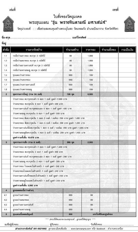 2. ชุดกรรมการใหญ่ รับพระ 24 องค์ ราคาจอง 6,500 บาท มียอด 1 ชุด