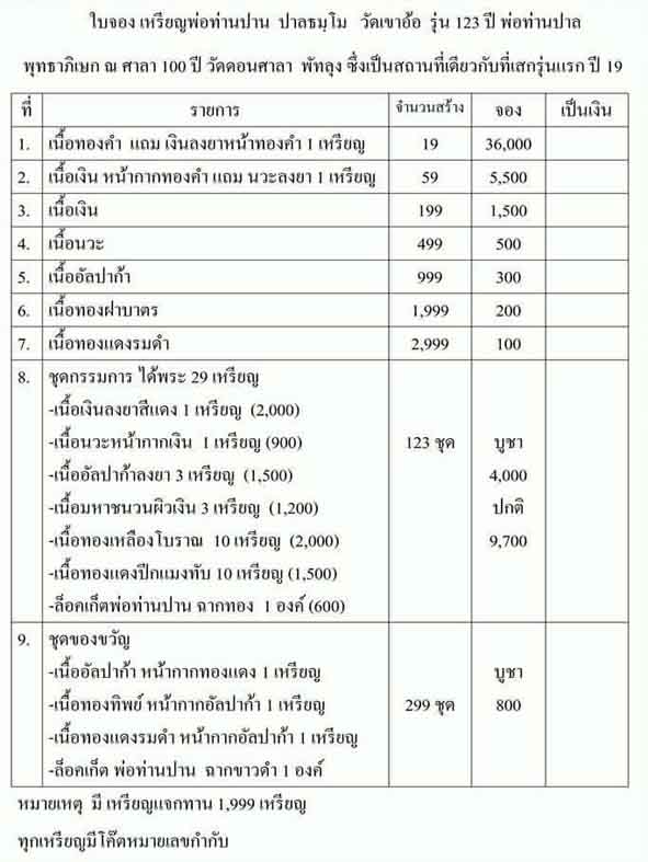 ชุดกรรมการ รับพระ 29 เหรียญ 4000 มียอด 3 ชุด