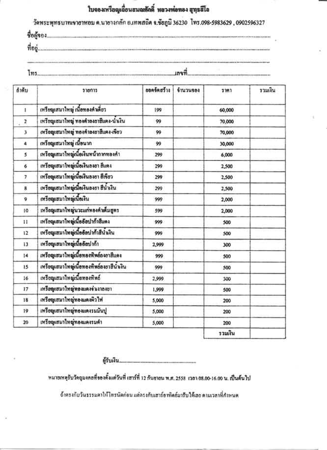 - เนื้อทองทิพย์ มี 10 เหรียญๆ ละ 350 บาท