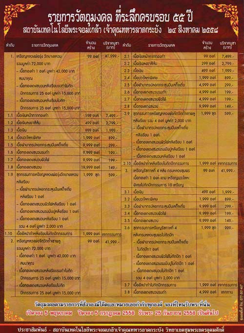 เปิดจองวัตถุมงลง ครับรอบ 55 ปี