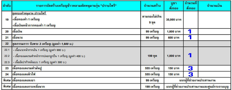 รายการและจำนวนตามตารางครับ ราคาวัด+ค่าจัดส่ง ems 100 บาท
