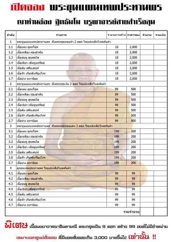 รายการที่ 3 ฝังตะกรุดทองแดง 2 ดอกโรยแร่เหล็กไหลพันคำ มียอดเนื้อล่ะ 10 องค์