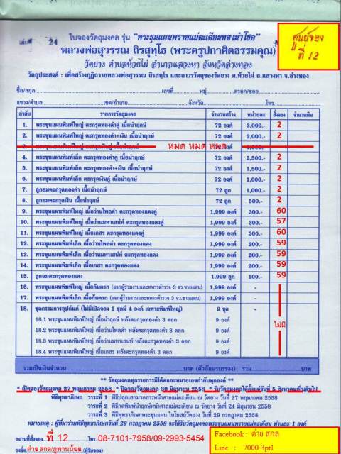 วัตถุประสงค์ เพื่อหารายได้สร้างกุฏิถวายหลวงพ่อ