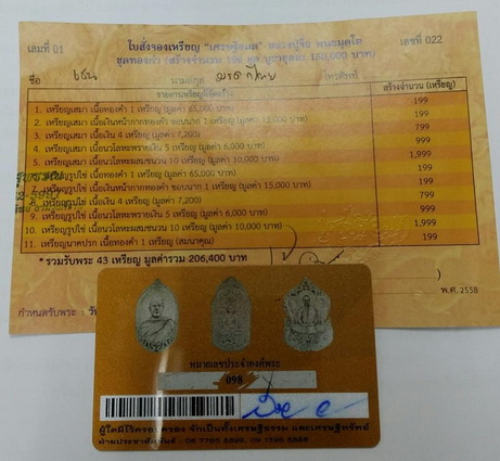 2.1 เหรียญเสมา เนื้อทองคำ มี 1 เหรียญๆละ 55,000