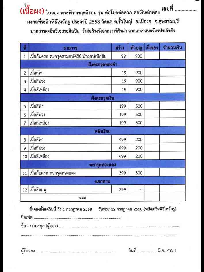 ปล.รายการจัดสร้างยังมีเหรียญและรูปหล่อจะเปิดจองเร็วๆๆนี้ครับ