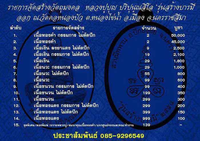 เปิดจอง เหรียญหลวงปู่บุญ วัดปอแดง รุ่นสร้างบารมี ออกวัดคอหนองบัว รายการจองดังนี้