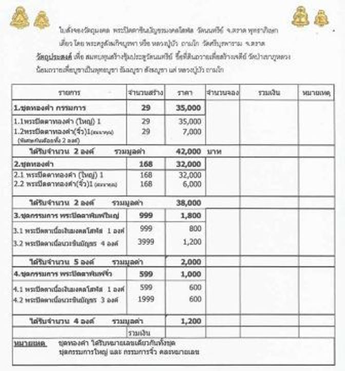 แยกรายการที่ 3 ชุดกรรมการ พระปิดตาพิมพ์ใหญ่ มีรายการดังนี้