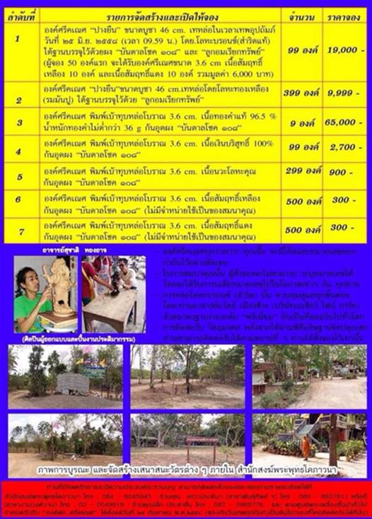 1. เนื้อบรอนซ์ สำริดแท้ สร้าง 99 องค์ ราคาจององค์ละ 19,000- มียอด 1 องค์ ( หลังการจอง องค์ละ 24,000-)