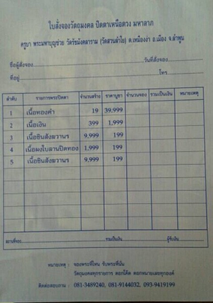 รายชื่อศูนย์จองลำดับที่6ศูนย์พระเครื่องวัดสน(น้อย) |