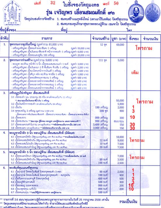 จองวัตถุมงคล รุ่นเจริญพร เลื่อนสมณศักดิ์ 93 หลวงพ่อท้วม เขมจาโร วัดศรีสุวรรณ จ.สุราษฎร์ธานี