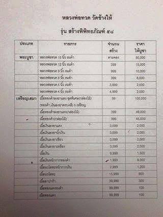 2.พระบูชาหน้าตัก 4 นิ้ว มียอด 1 องค์ ๆ ละ 3000 บาท