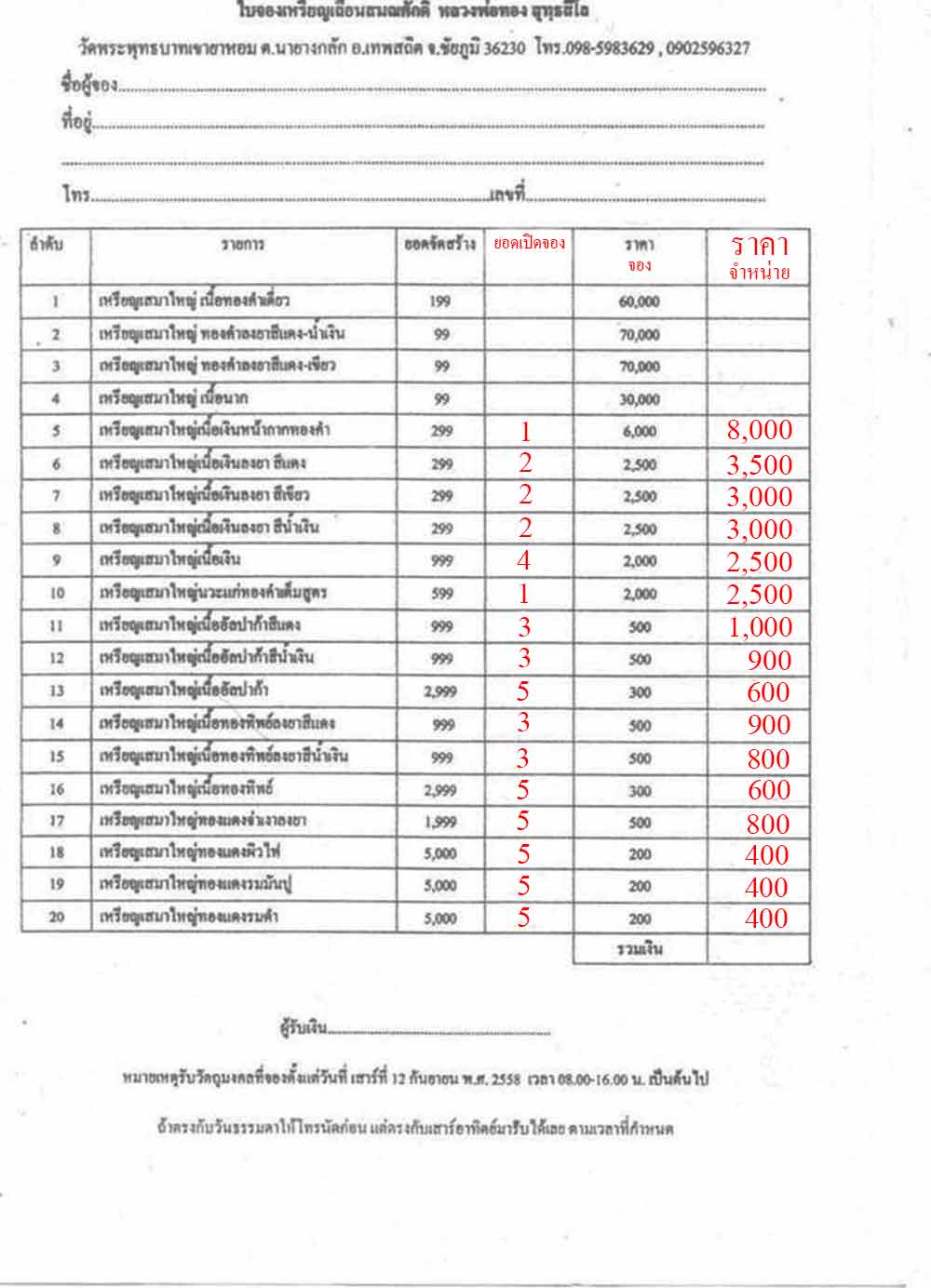 โทรถามก่อนสั่งจองนะครับ