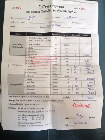 เปิดยกบิลใบจอง หลวงปู่ทวด วัดช้างไห้ รุ่น สร้างพิพิธภัณฑ์ ปี 58 +แค่ 25% เท่านั้น!!!