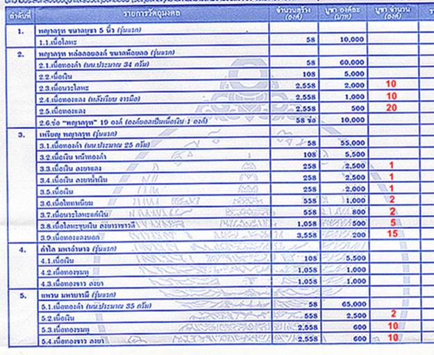 รายการเปิดจองตามรายการ ราคาวัด