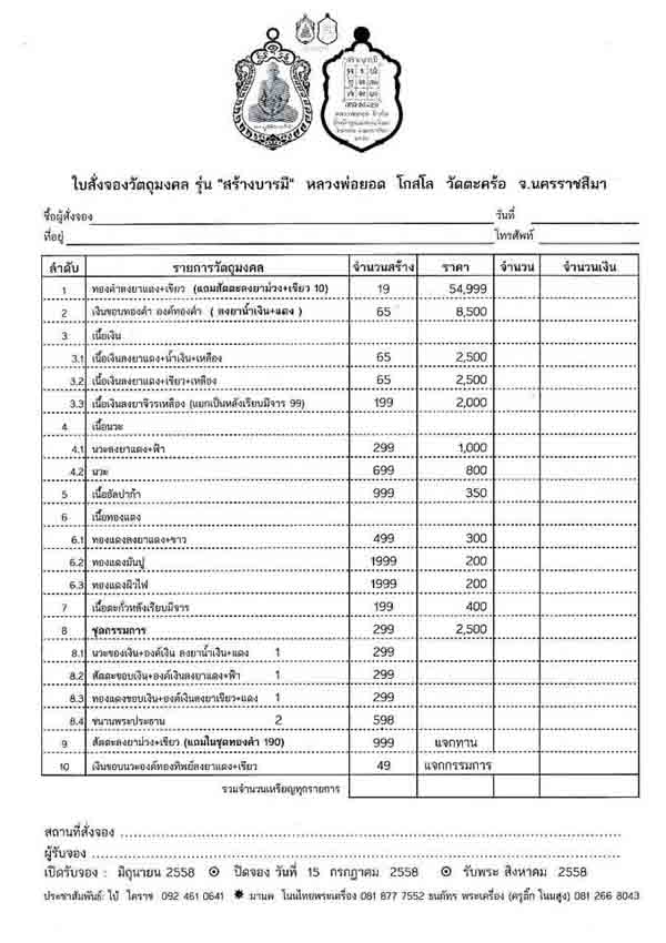 วัตถุประสงค์:เพื่อร่วมสมทบทุนบูรณะพระอุโบสถวัดตะคร้อ ต.ด่านจาก อ.โนนไทย จ.นครราชสีมา