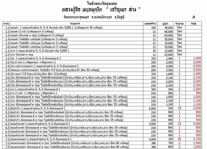 เปิดให้จองราคาวัด ตามรายการค่ะ