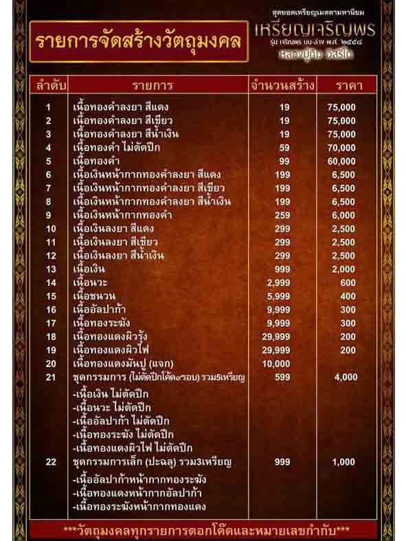 รายการที่ 15 เนื้อชนวนมี 20 องค์ๆละ 400 บาท
