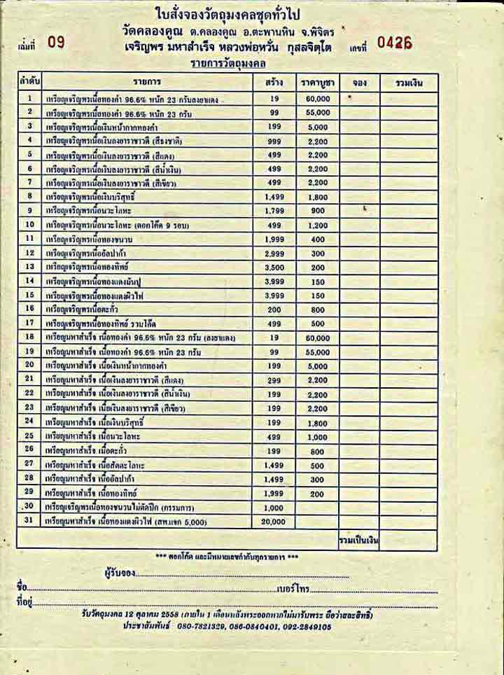 30..เหรียญเจริญพร ชุดกรรมการเล็ก (ได้รับพระ 6 รายการ มูลค่า 2059 บาท) มียอด 5 ชุด บูชา ชุดๆละ 1000 บาท