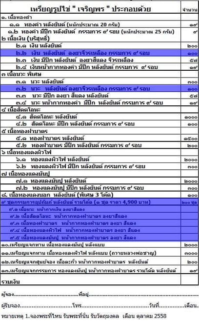 - รายการที่ 9 กรรมการอุปถัมถ์ หลังยันต์ รวมโค๊ต มียอด 2 ชุด ชุดละ 3500 บาท