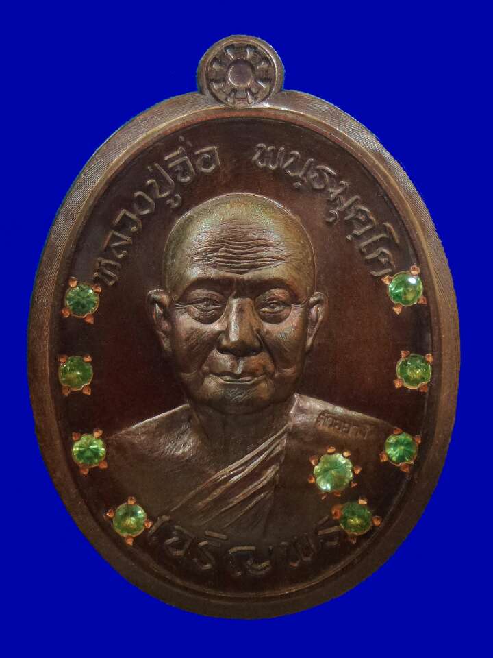 9.3 ทองแดง มันปู ฝังพลอยแท้ ๙ รอบ ไม่ตัดปีก หลังแบบ (น้ำเงิน ,เหลือง ,ขาว ,เขียว ,แดง ,ม่วง สีละ 66 เหรียญ) เหรียญละ 800 บาท มียอด 4 เหรียญ