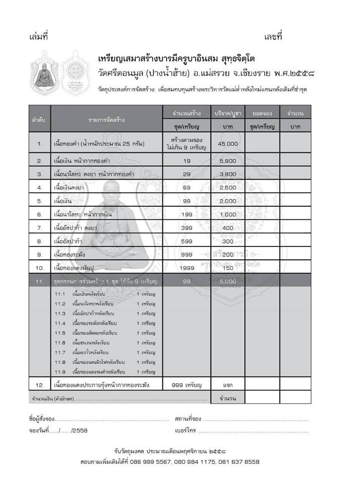 เปิดจอง!!!! เหรียญเสมาสร้างบารมี หลวงปู่ครูบาอินสม วัดศรีดอนมูล(ปางน้ำฮ้าย) จ.เชียงราย