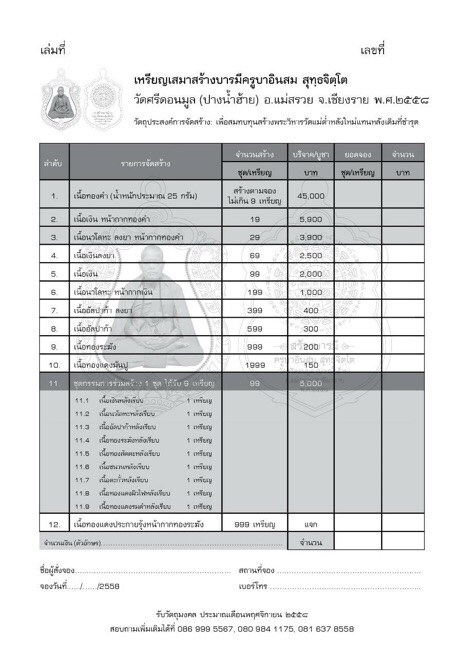 เนิ้อทองระฆัง 25 เหรียญ ๆ ละ 200 บาท