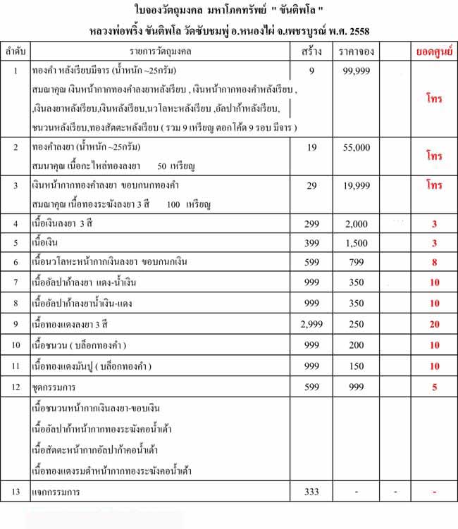 // ชอบรายการไหน ลงชื่อจองได้เลยครับ //