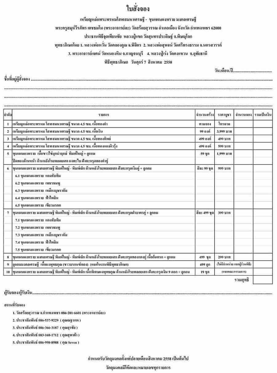 ผู้ที่สั่งจองแล้วกรุณาชำระเงินภายในเวลา 1 วัน